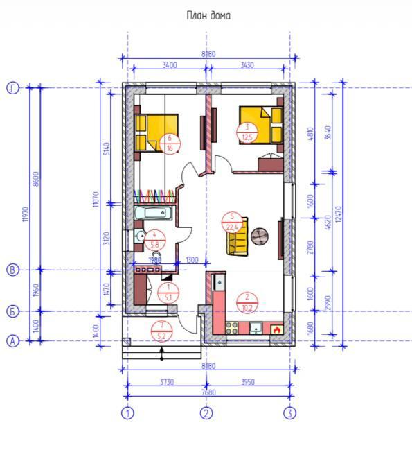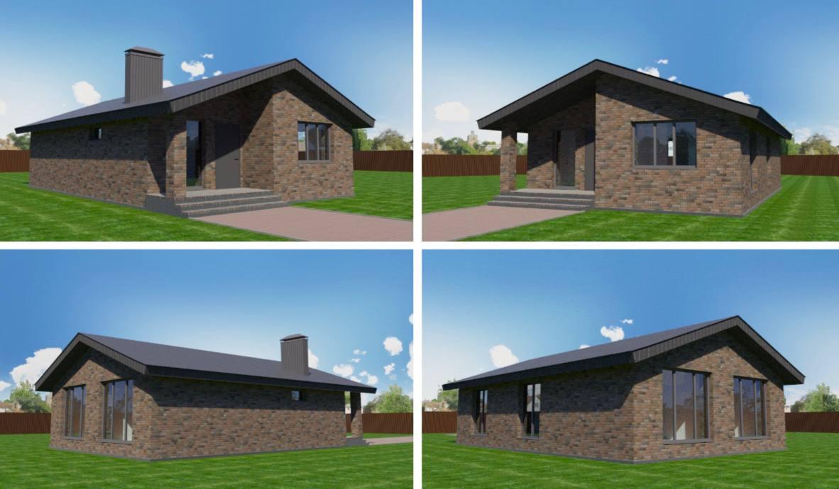 Одноэтажный дом для семьи из 4 человек.